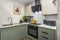 -Modern kitchenette complete with a 2-ring ceramic hob, built-in oven, and under-counter fridge/freezer