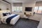 Open-plan living space with sleek, fully equipped kitchenettes
