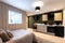 - Fully equipped kitchenette with 2 ring ceramic hob, built in oven, and under counter fridge/freezer