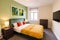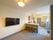 The room includes a double bed, modern furniture, en-suite shower, WC and wash basin, and a large flat-screen TV. It’s a stylish, comfortable space designed to be easily personalised.
