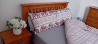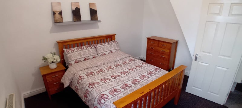 A spacious double bedroom with double bed/mattress & new bedding. Three piece bedroom furniture which includes a double wardrobe, 4 drawer chest & bedside cabinet. Fully double glazed and heating provided by thermostatically controlled radiator.