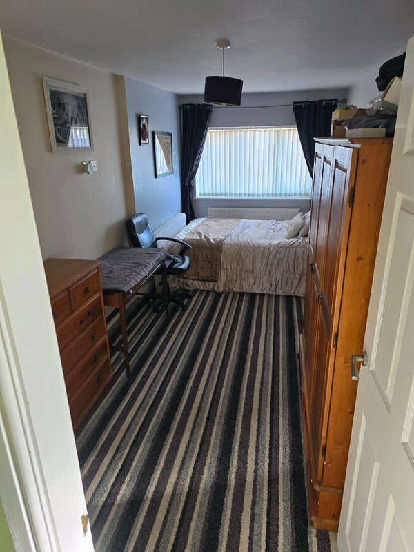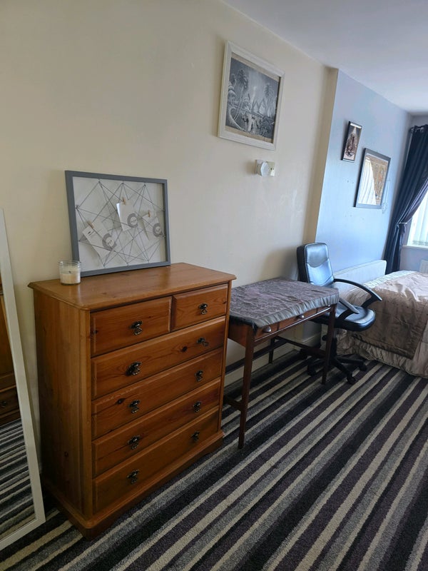 The room has lots of storage, including an large double wardrobe, chest of drawers and a desk. It also has a very comfy double bed.