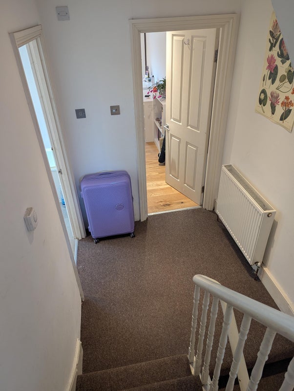 It's a lovely big house with lots of space and we all have our own bathrooms. The room is very large with plenty of storage space and a private bathroom with a bath. We also have a large shared kitchen and living room.