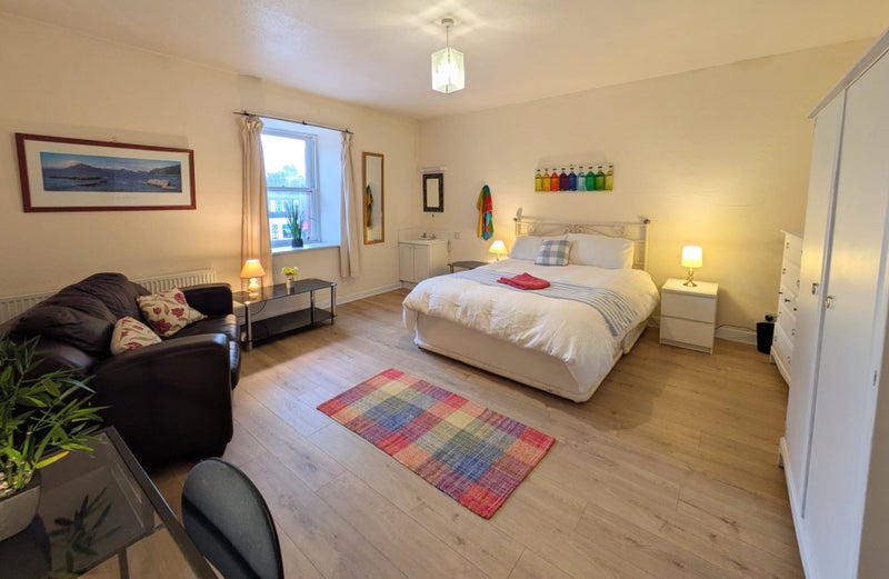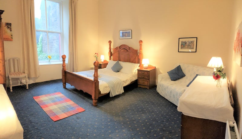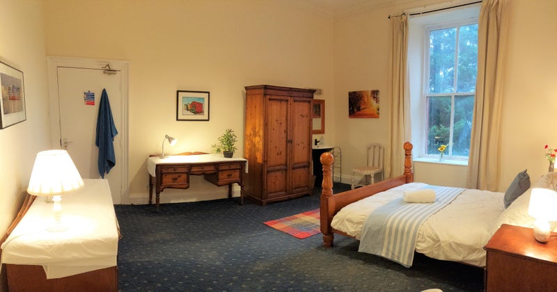 The room has a big south-facing window, so it's light, and it has its own wash hand basin. It's the only bedroom on this floor so it has almost exclusive use of the shower room/toilet.