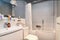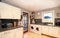 - Spacious living/dining room with dining table, sofa, armchairs, TV, and bookshelf.
