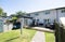 - Small garden with a big patio and outdoor furniture.