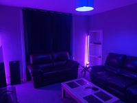 The living room has two reclining sofas and a dining table which allows for upwards of 10 people sitting comfortably. The TV is 75 Inch and you are more than welcome to use all my streaming services (Prime Video, Netflix, NOWtv and Disney+). It also has an LED bulb that changes colour along with two LED stands that allow for complete control over the mood lighting in the living room.