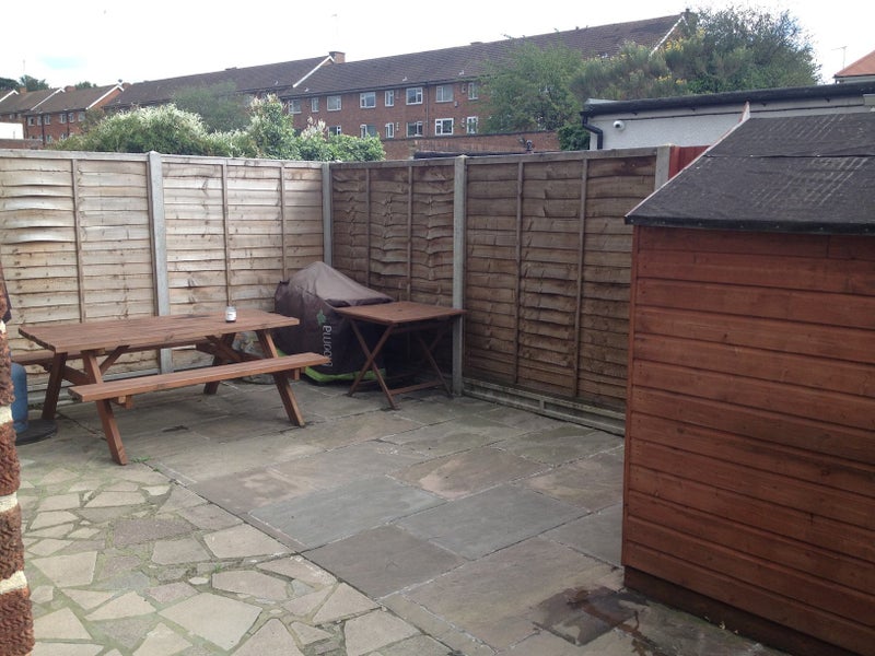 • Spacious communal lounge, front garden, and rear patio with picnic table.