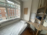 West facing room with ample storage. En-suite wc and basin. Shower in main bathroom shared with one other.