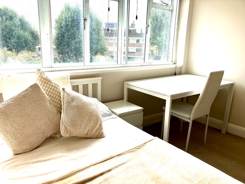 This exceptionally large, spotless double room comes fully furnished and features huge windows that flood the space with natural light, offering stunning sunrise and sunset views. The room is so spacious you can easily add your own furniture and truly make it your own — without losing that cosy, comfortable feel.