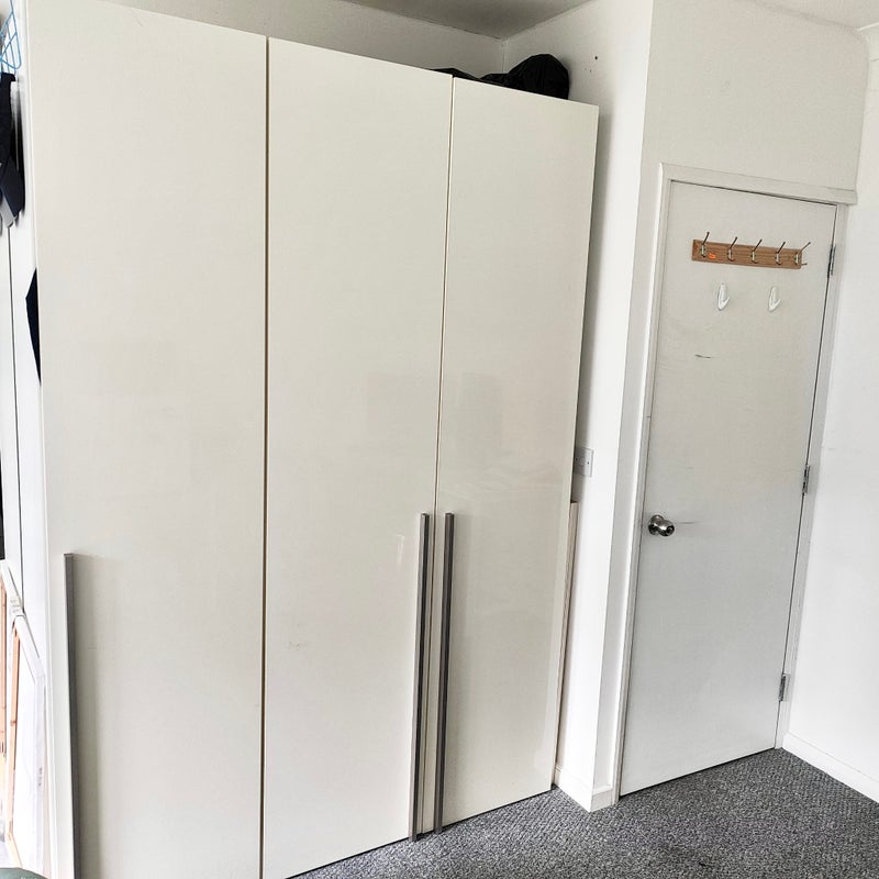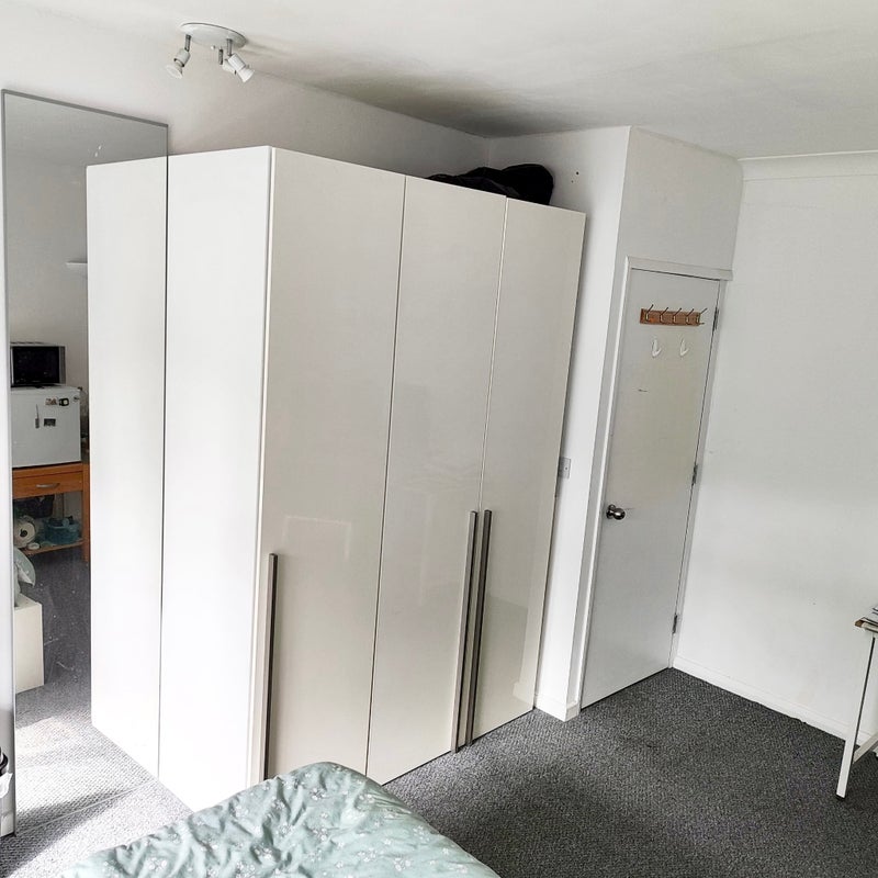 · A spacious double bedroom with ample storage, including a large wardrobe and blackout blinds.