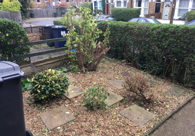 Medium sized private garden with grass suitable for sitting out in the summer.