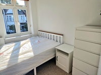 This lovely room is available in a great houseshare just moments from the tube and all the amenities of the high street. The house is spacious, newly painted, and features a large kitchen and a shared living room that opens onto a deck and a huge, well-maintained garden.