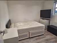 Room is fully furnished with double bed, wardrobes, chest of drawers.