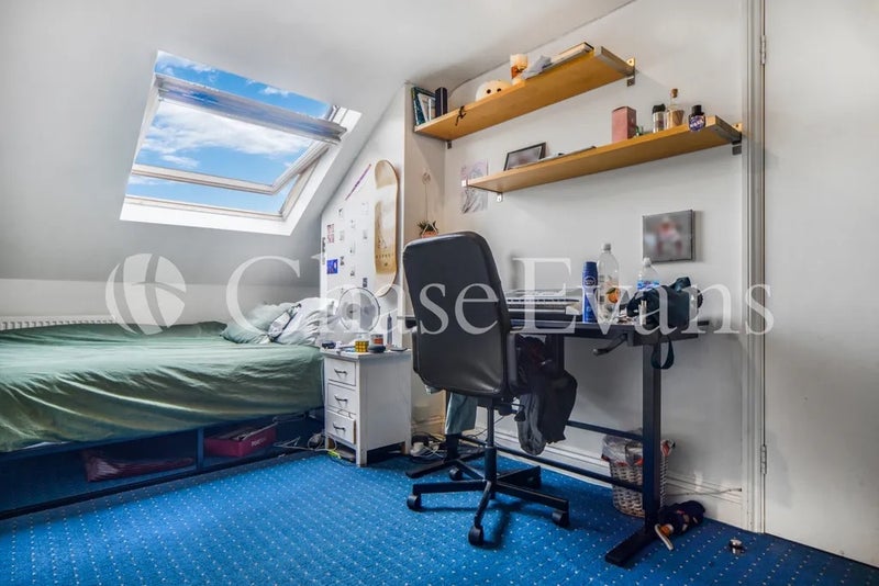 The house is arranged over four floors and offers generous living space including a large kitchen and dining area that opens onto a private south-facing garden. The property also benefits from a driveway for parking and multiple bathrooms for convenience.