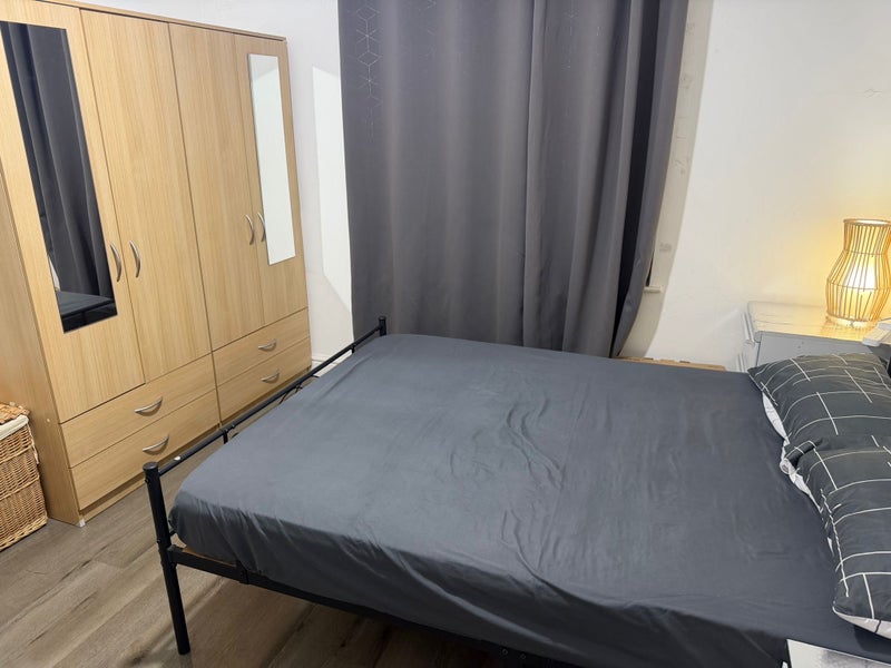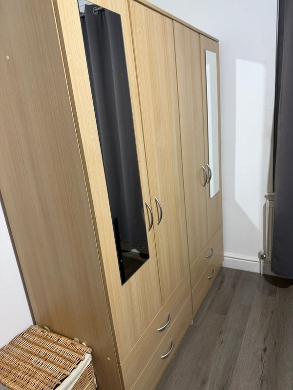 Fully furnished, brand new double bed & mattress, 2 wardrobes, 2 chest of drawers, bedside table, and laundry bin.