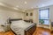 This is a double (20m²) bedroom with a en-suite bathroom. It has a full-length window, making it very bright and airy. The room comes fully furnished with a king-sized bed, built-in wardrobe, 2 x chest of drawers, bedside cabinet, and wooden Venetian blinds. There is also a full-sized desk and an office chair.