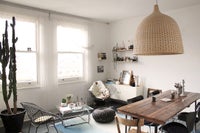 Open-plan and bright architect-designed kitchen & living room, utility room with washing machine, and bathroom with bath/shower. General look of the flat is vintage meets contemporary.
