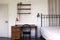 The bedroom available has high ceilings and painted floorboards, 2 windows with a fantastic view over the lush neighbourhood's gardens. There's a good quality double mattress on a solid French antique cast iron bed, a clothes rail (not pictured) & ample shelf storage, as well as a large vintage desk + chair, and a sofa.