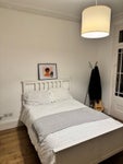 Large double room (converted from the original living room) with shed view. Fully furnished with a comfortable double bed, desk, chest of drawers, and PAX wardrobe.
