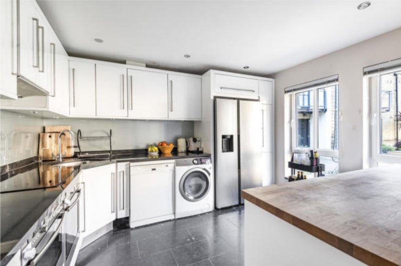 Dishwasher and oven are provided.