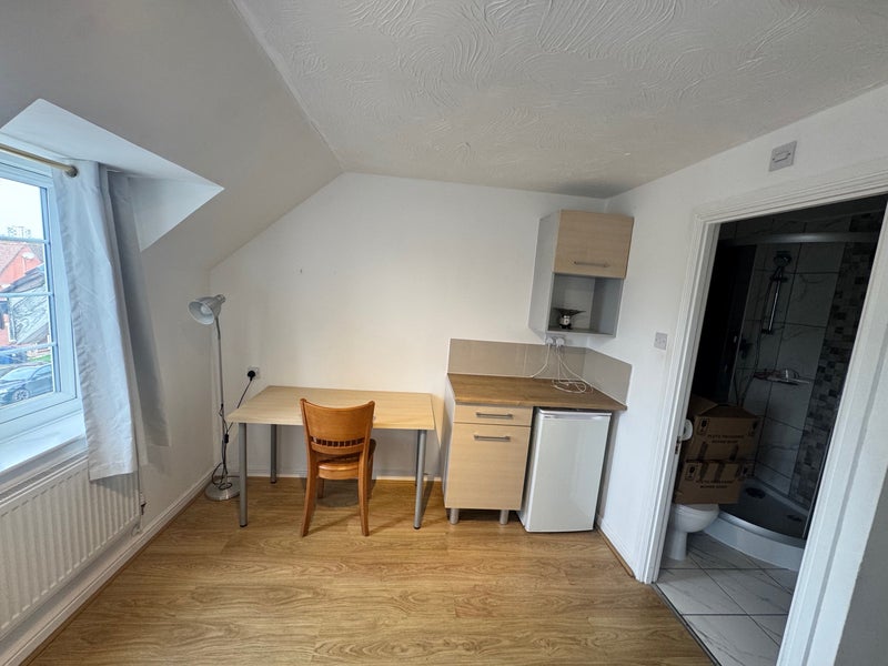 This is a large double room with own shower and toilet room, kitchen area with fridge, kettle and microwave.