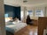 The bedroom is furnished and has an en-suite bathroom. There is a closet, as well as storage drawers under the bed. The room gets lots of natural light.