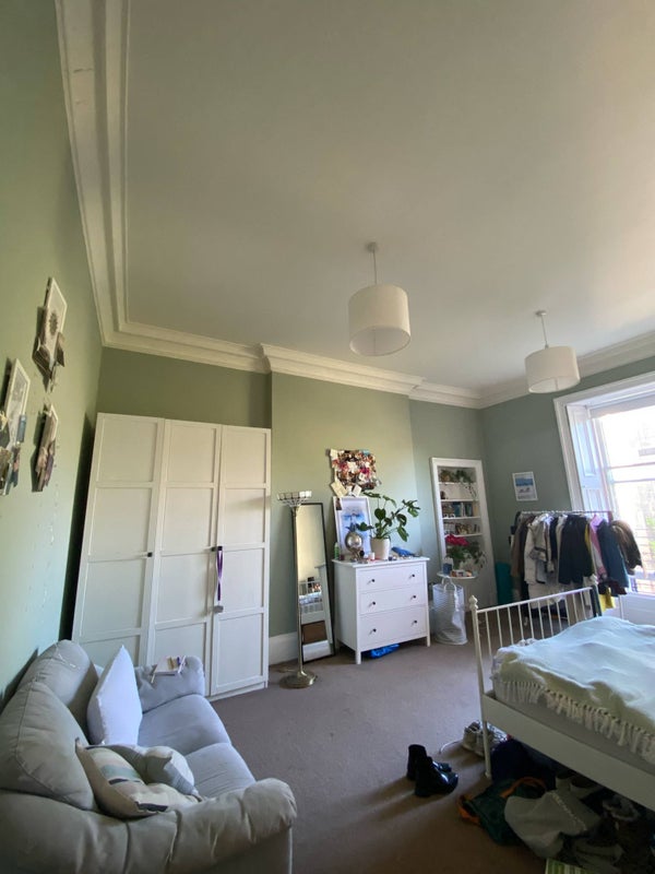 It has 3 bathrooms, a kitchen with a dining table (there is a washing machine with a dryer and a dishwasher), a big living room, and a communal garden. Located in in Tollcross/Bruntsfield area , 12 min walk to George Square uni campus, 3 min to the Meadows, 15min to Princes Street.