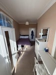 The Room: Large double bedroom furnished with a bed, desk (perfect for WFH), wardrobe, chest of drawers, and bookshelves. South facing and sunny.