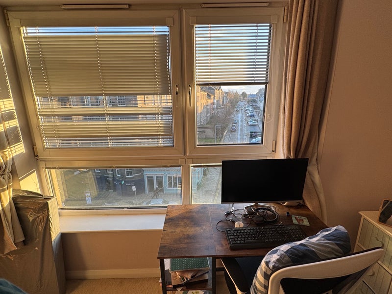 The flat is spacious, on 4th Floor with south facing windows giving plenty sunlight throughout the year. The work desk and chair is included in this package.