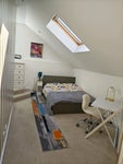 Spacious bright and airy double bedroom with ensuite bathroom. All furniture shown in the pictures comes with the room and includes an Ottoman double bed with plenty of storage underneath, a mattress(bedding/linen included), a study desk with a chair and a chest of drawers. There is a storage room too in the room with a railing to hang clothes.