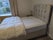 The bedroom has a double bed and oak furniture which are all in great condition.