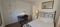 Double bed (140 cm), writing desk, office chair, chest of drawers x 2 and wardrobe with hanging space for clothes. Also shoe rack with coat hooks.