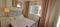 Double bed (140 cm) with orthopaedic mattress, writing desk, chair, chest of drawers x 3 and wardrobe with hanging space for clothes.