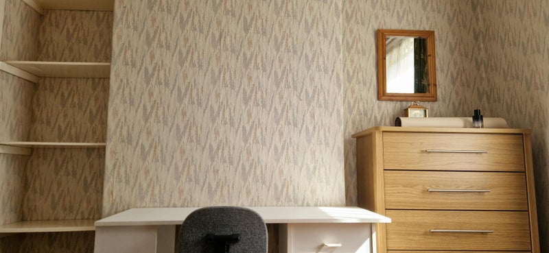 The room has a desk, plenty of storage space, a very comfortable bed, a wooden floor and a nice sunny window. There is no passing traffic noise.