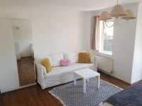 I have 1 room available. It is a 22 squaremeter large room newly painted with king size bed, sofa and table, chest of drawers, desk and desk chair and wardrobe with double doors leading to a small balcony.