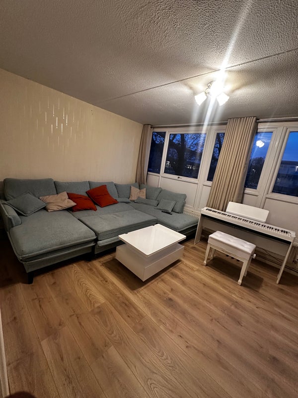 2 bathrooms, shared living room, and large kitchen with all appliances including washing machine, fridge freezer and cooker.