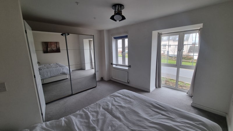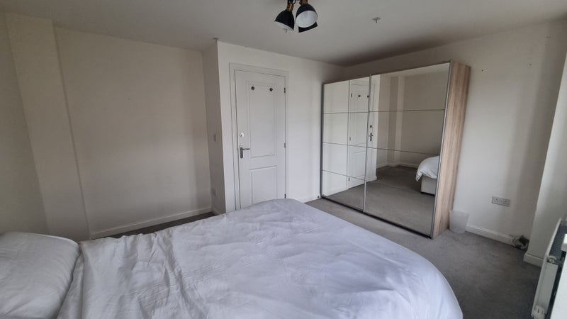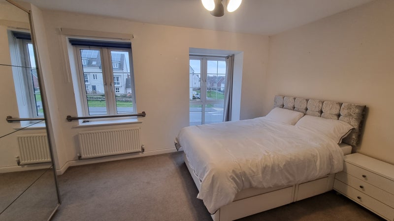 A spacious bedroom at the front of the first floor of this 3 storey house.