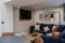 Large flat screen TV with versatile seating area