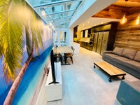 Stylish fully furnished top floor Double room, and ground floor room finished to a high spec, including double bed with underneath storage . White gloss furniture, designer mirror and contemporary artwork.