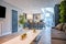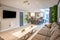 The large open plan living room features quartz worktops, dishwasher, tumble dryer, washing machine and more