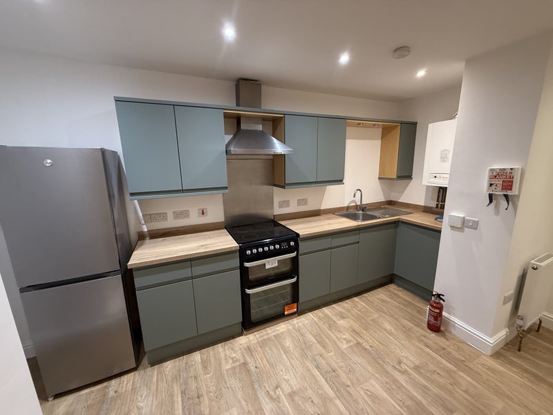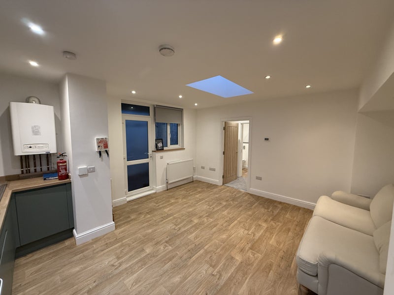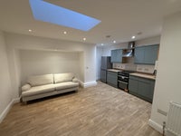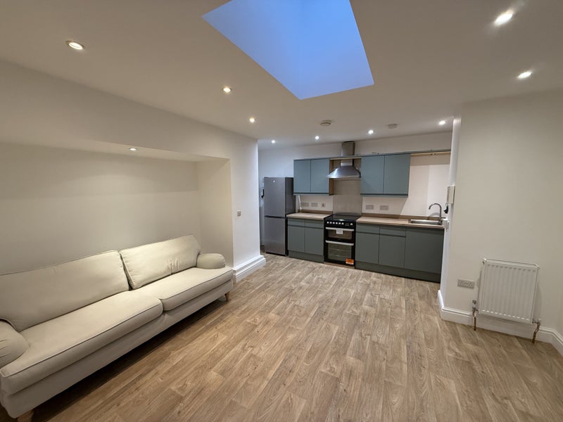 The property consists of an open plan kitchen/living room which is flooded with light from a large sky light, a quality kitchen which has a cooker, hob and fridge included.