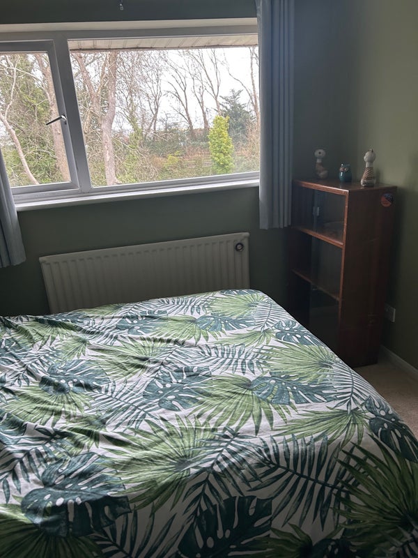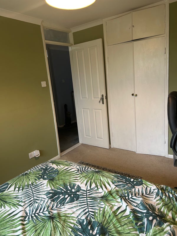 New mattress on double bed, recently decorated room. Use of garden, kitchen and bathroom. Shared bathroom. 2 toilets in property. No use of living room. Small area in garage and loft for storage if needed. Lots of parking available.