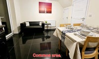 Spacious open plan communal lounge, dining and kitchen area with comfortable sofa and dining furniture. Modern fitted kitchen with brand new fridge / freezer, washer dryer, kettle, toaster and microwave. Kitchen is also furnished with complete set of brand new crockeries and cooking utensils.