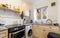 Separate designer kitchen with integrated appliances and sleek cabinetry