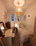 The room currently comes with a single bed, but there is room for a double if you wish. Although the room isn’t huge, the flat is very spacious, with a gorgeous sunny living room and kitchen.