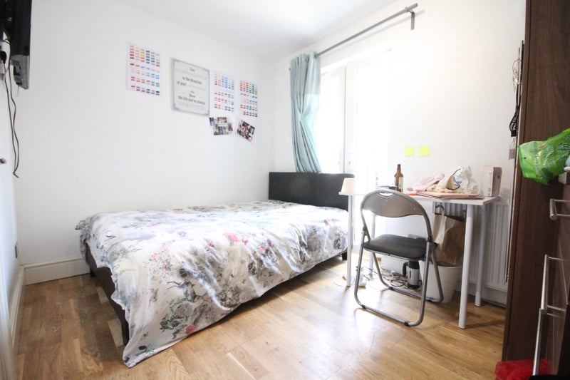 A spacious double room with en-suite in a not so long ago refurbished flat to a favourable standard.