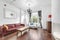 The flat boasts real wood floors, large living room, eat-in kitchen. with stools and lots of daylight. Comfortable lounge, 2 sofa seating area and small shared patio garden.
