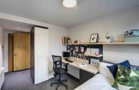 The room has a small double bed, with an en suite shower room. There is also a wardrobe, desk and plenty of storage. The kitchen is shared with the 4 or 5 other residents of the flat.