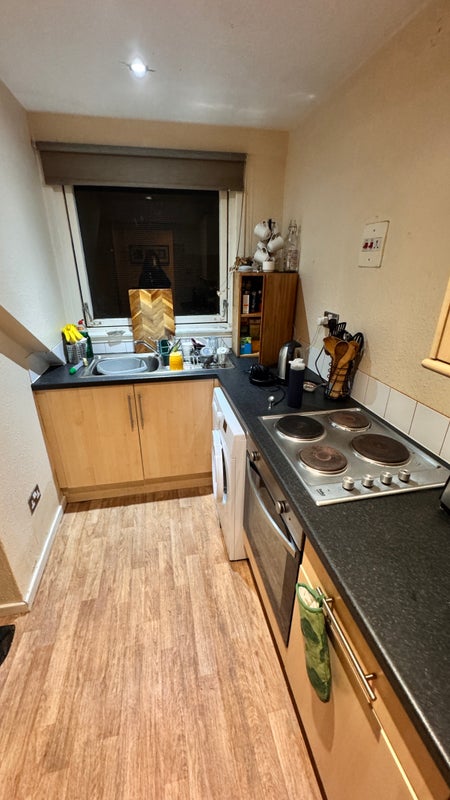 I have a room in the penthouse flat in Pollockshields. The room gets plenty of sun and there is also a shared balcony/roof access. The nearest train station is only 3-5 minutes away and 10 minutes to the nearest bus stop. I’ll add more pictures soon.